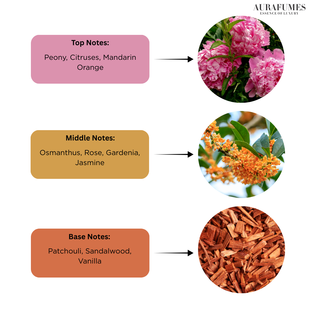Base Notes: Sandalwood, Patchouli, Pink Pepper